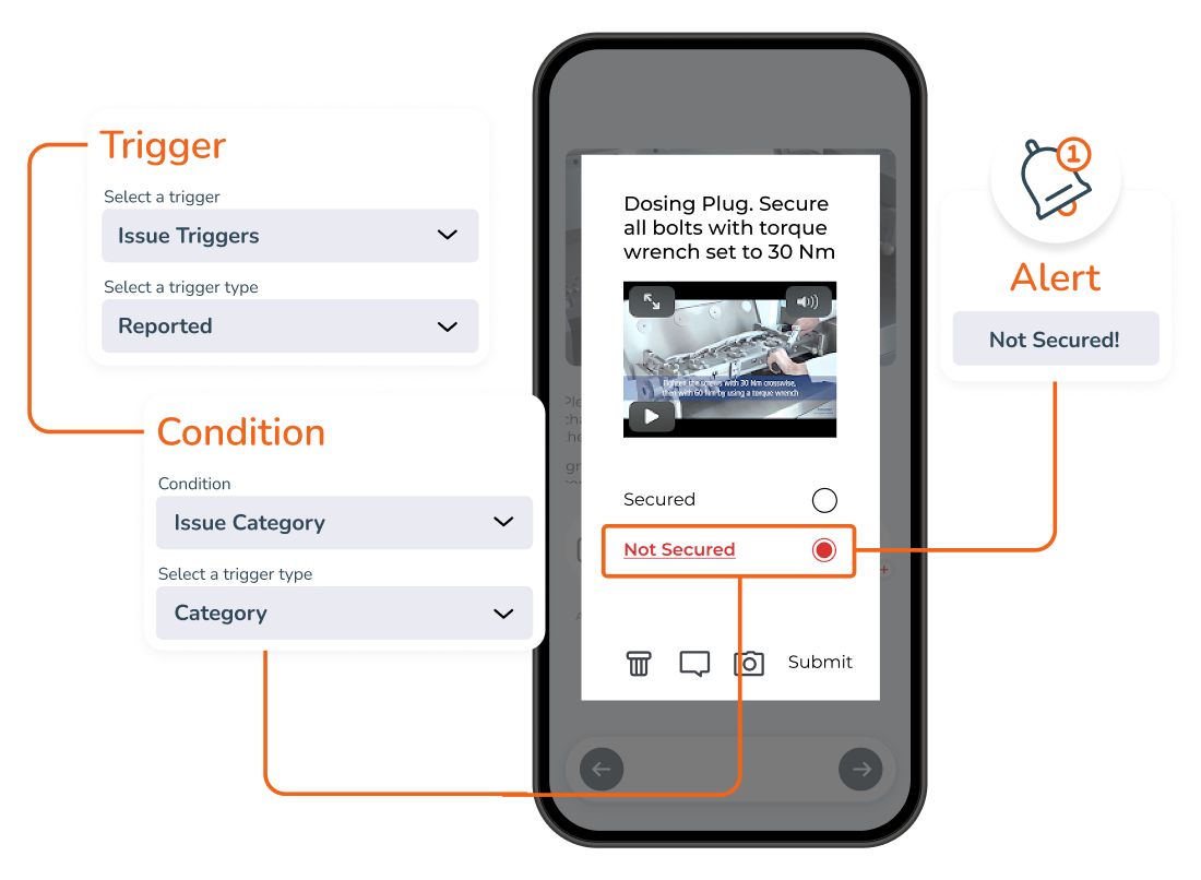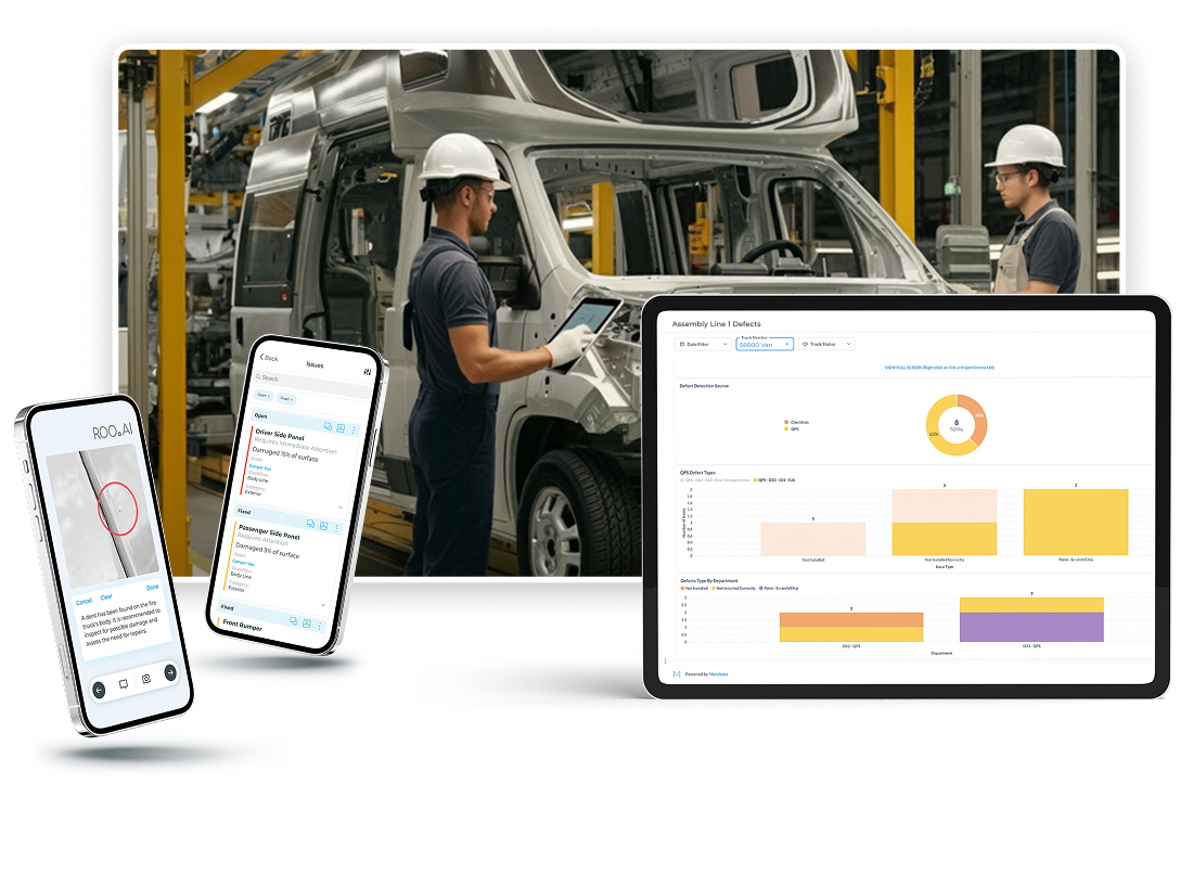Quickly turn existing forms, checklists, and training videos into guided digital workflows. ROO.AI smart automations assist operators in-process with instructions and recommended fixes, boosting speed and quality without slowing production.